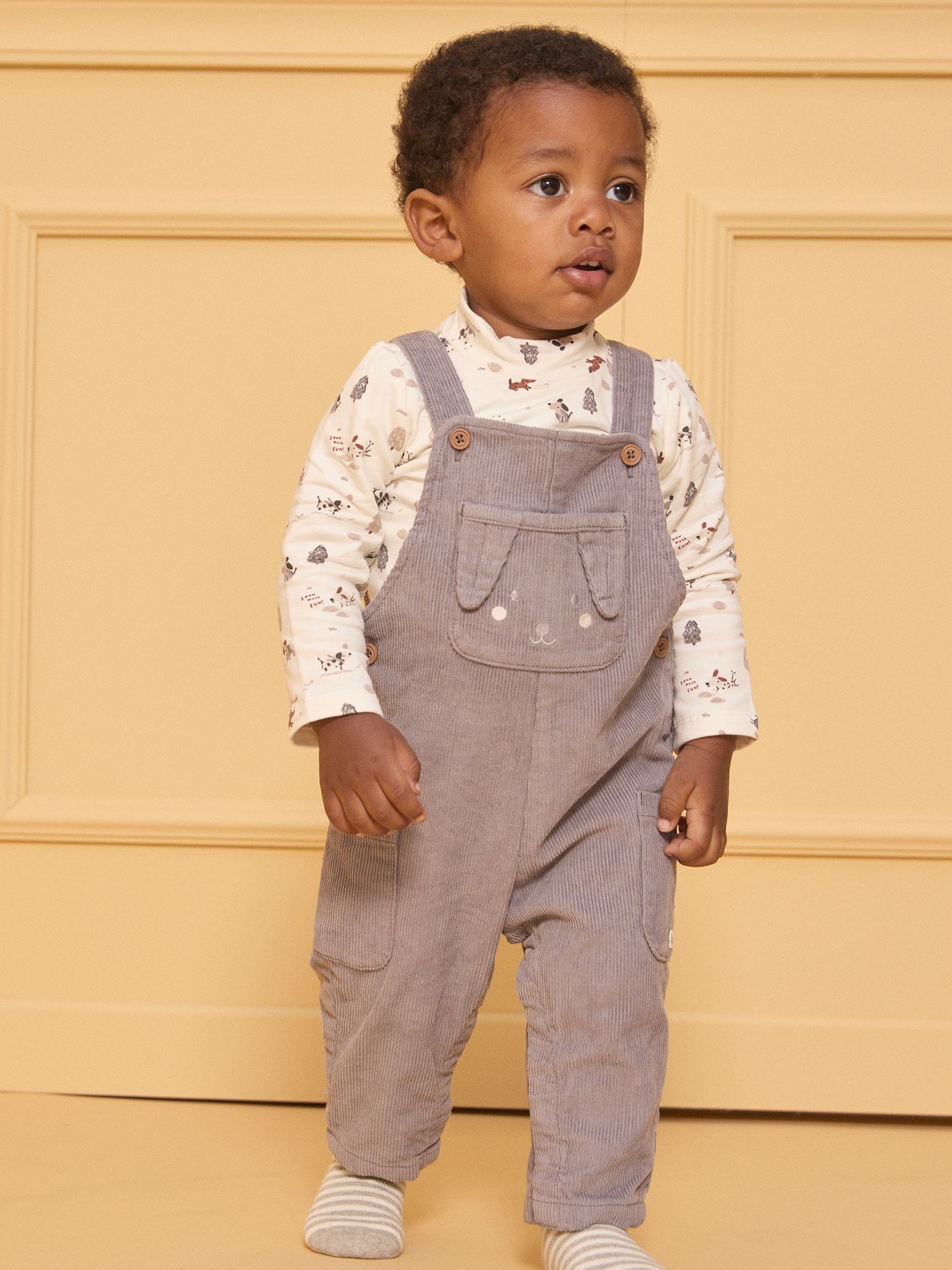 Salopette en velours côtelé avec détails de Noël