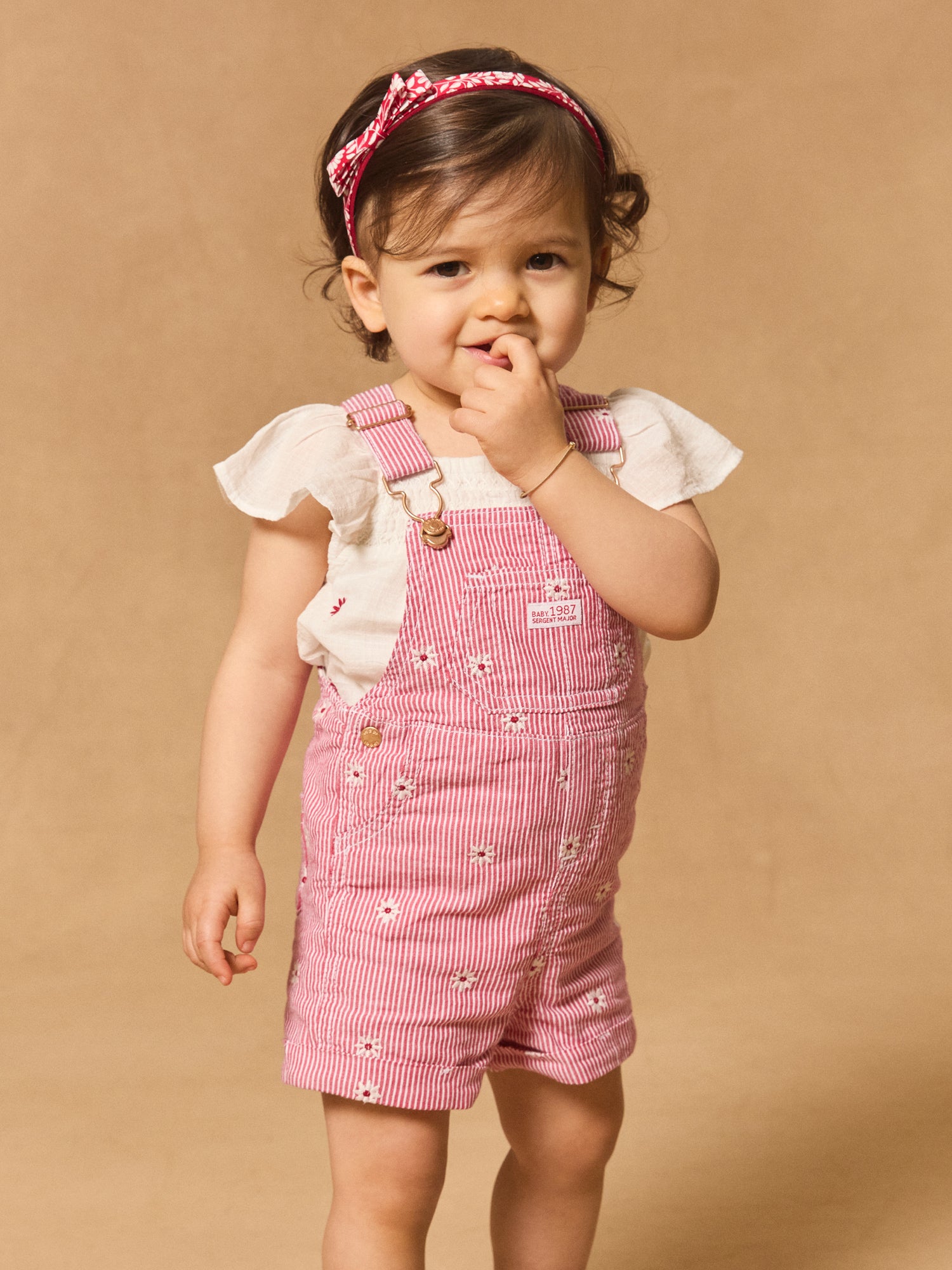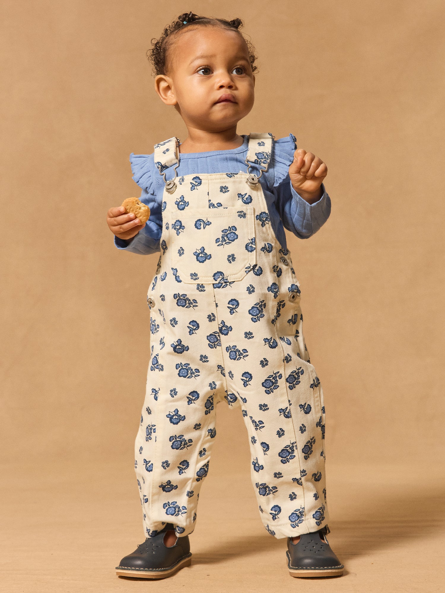 Salopette courte marron imprimé fleurs Bébé Fille