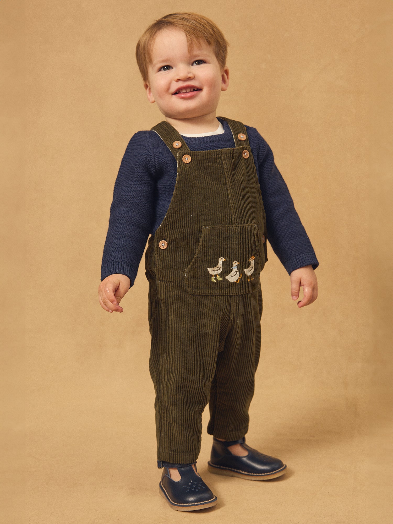 Salopette kaki en velours à broderies oies Bébé Garçon