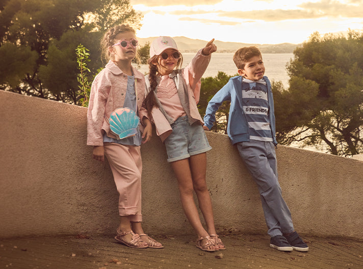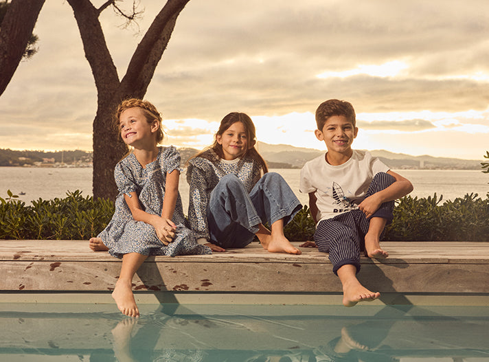 Rose pâle pour les filles, camaïeux de bleu pour les garçons, pour des looks frais et élégants au bord de l’eau.