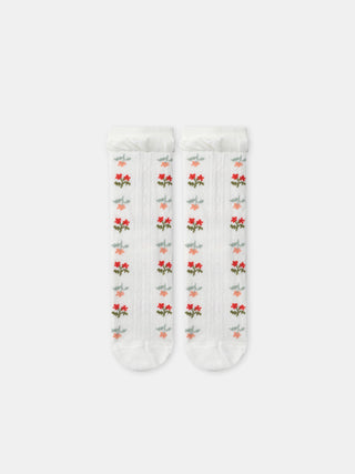 - Ecru avec jacquard fleur dans les tons rouges, corails et verts