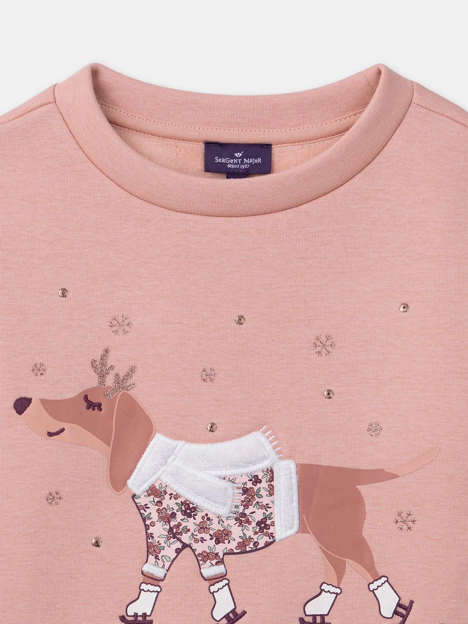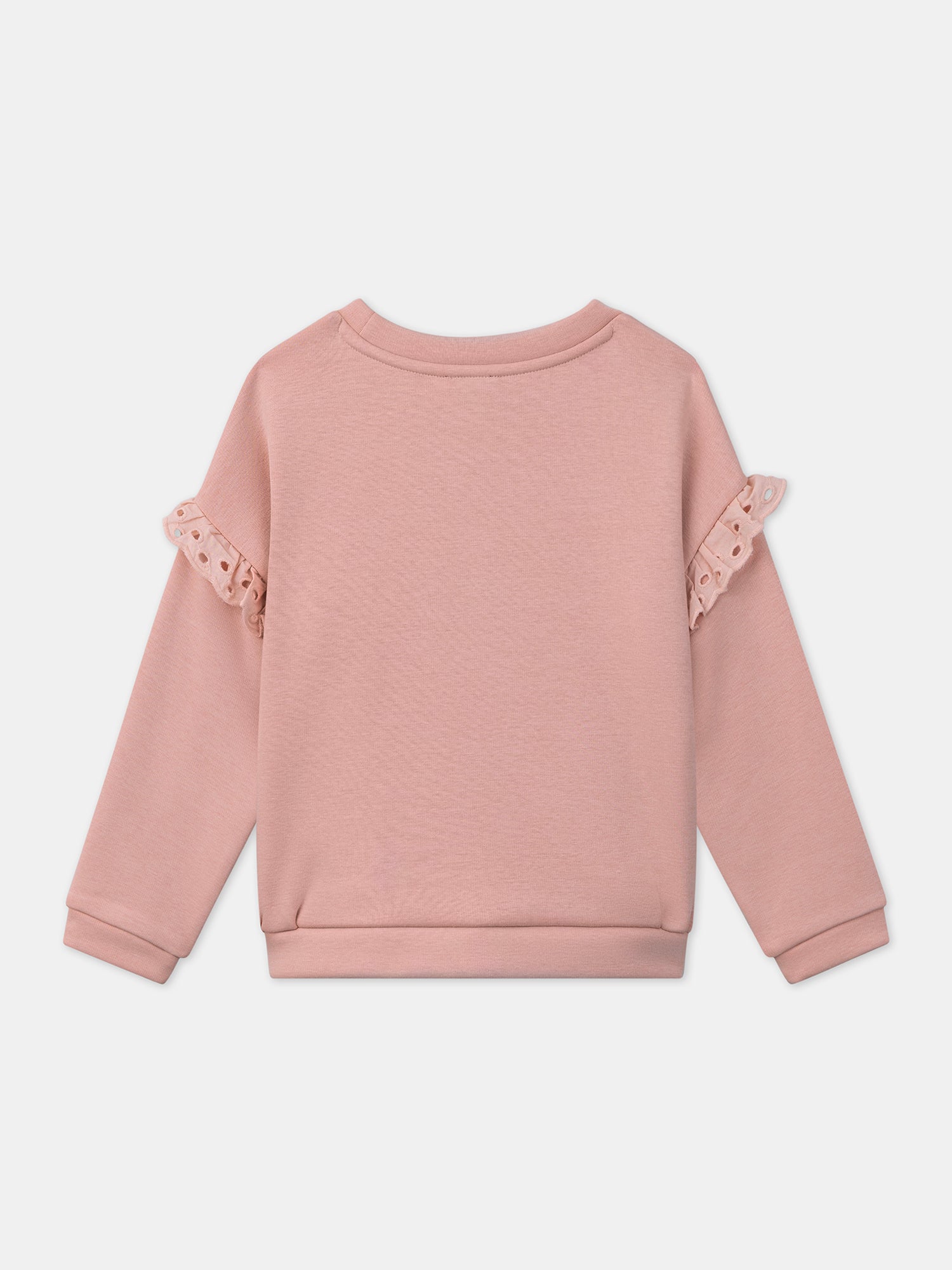 Ce sweat rose doublé en polaire est parfait pour les petites qui aiment allier confort et style. Avec ses minis volants en broderie anglaise aux emmanchures, il apporte une touche élégante et raffinée. Limprimé chien ajoute une note amusante, idéale pour des journées pleines de douceur.