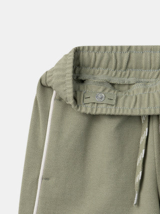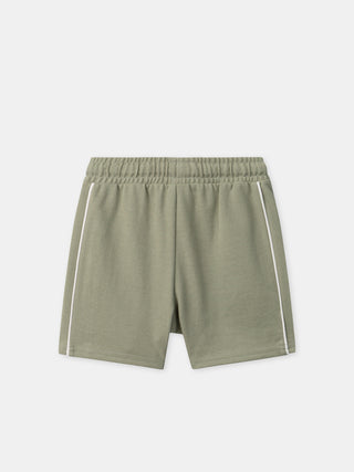 Gedacht für ein dynamisches und neugieriges Kind, können diese Shorts ideal im Frühling und Sommer getragen werden. Hergestellt aus hauptsächlich Baumwollpique, bieten sie einen bequemen Schnitt mit einem elastischen und verstellbaren Bund sowie zwei praktischen Fronttaschen. Die weißen Details an den Seiten, die frische grüne Farbe und das gewebte Etikett integrieren sich in eine sportliche und lässige Welt, die die Spiele des Alltags begleitet.
