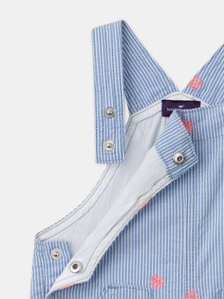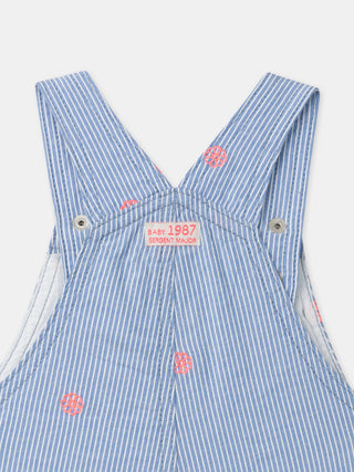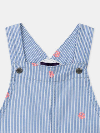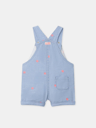 Kurze Latzhose mit blauen Streifen und Blumenstickereien für Baby-Mädchen