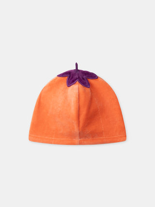 - Vendu avec un bonnet en velours orange en forme de citrouille. Visage brodé et patch feuille en jersey sur le sommet avec détail en 3D
