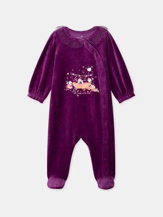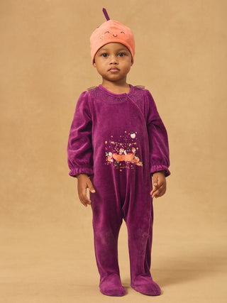Grenouillère violette en velours + Bonnet citrouille Bébé Fille