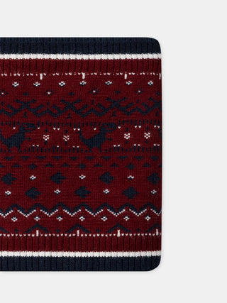 - Maille rouge cerise jacquard frises fantaisies : dinosaure, pattes de dinosaure...